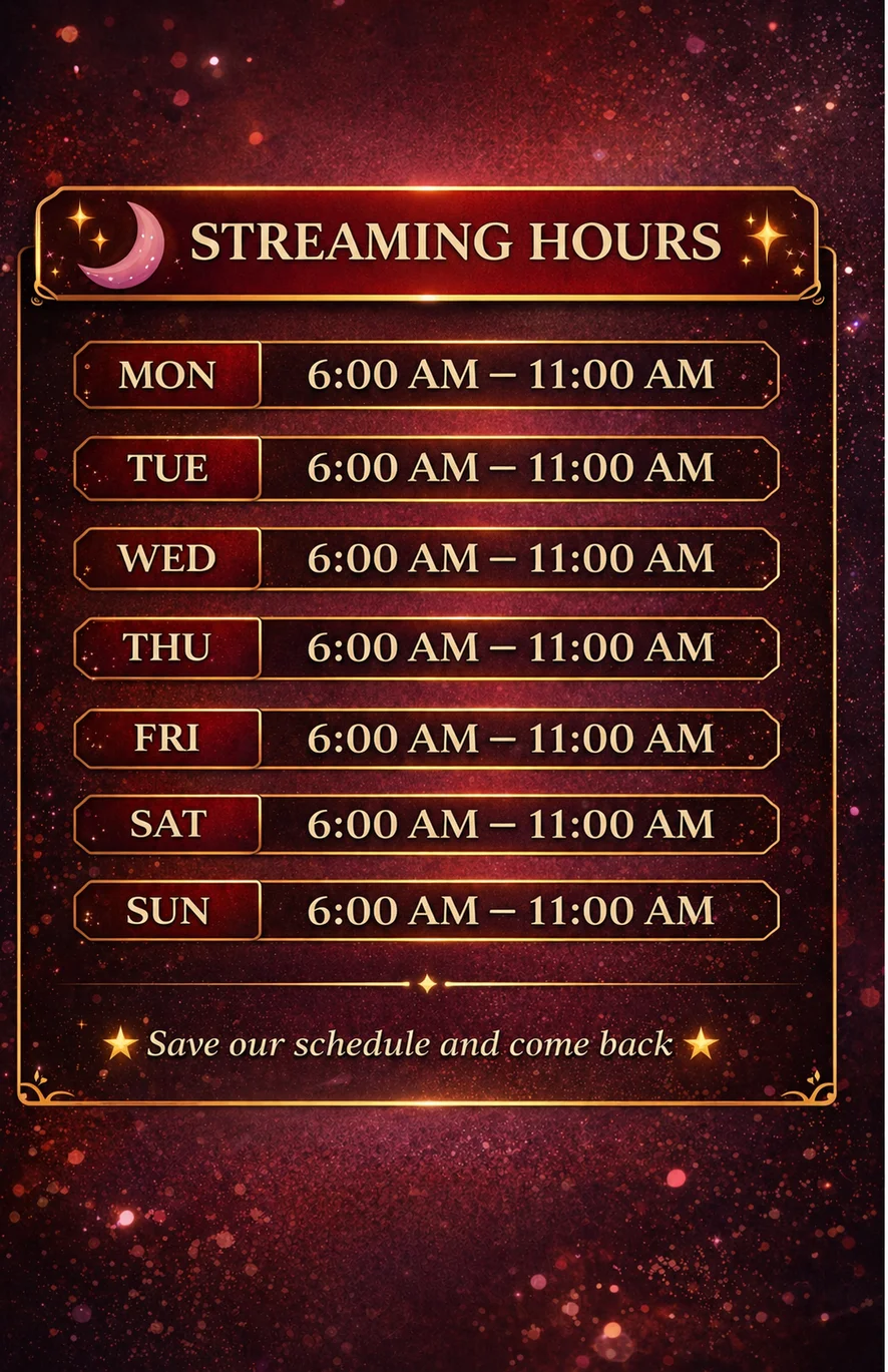 We stream during our favorite hours — late night vibes from 2:00 AM to 6:00 AM (Colombia time) 🌙